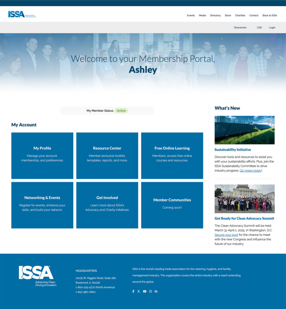 The new integrated member portal has transformed ISSA’s digital presence, creating a unified experience that strengthens member engagement and operational efficiency.